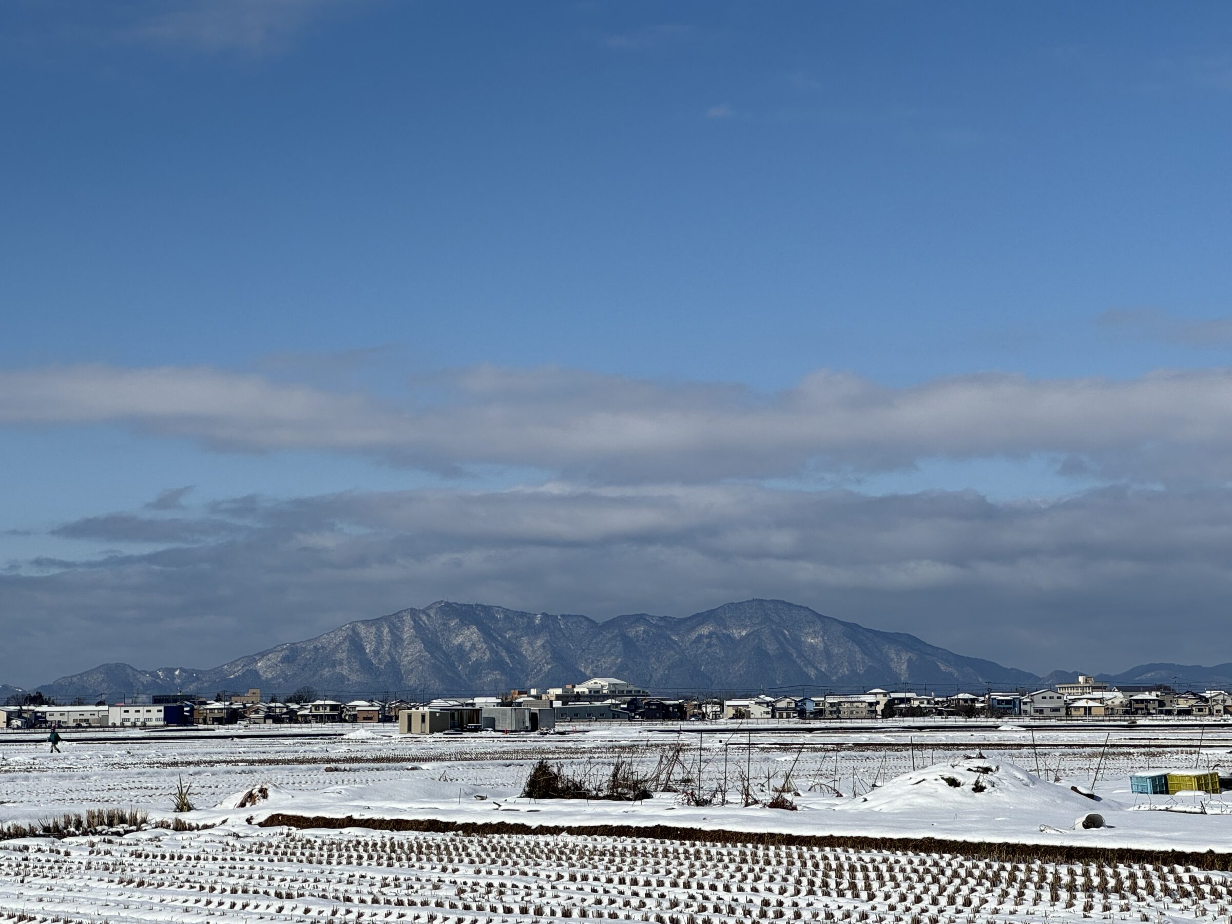 町から見える粟ヶ岳。この山の頂上に雪が降り始めると、地元の人は自然と同じことを感じる。「いよいよ冬が来たな」と、言葉にしなくても共有できる合図のようなものだ。昔、祖父からこんな話を聞いたことがある。「粟ヶ岳に大きく二回、雪が降ると、里にも雪が降り始める」。天気予報も、スマートフォンもなかった時代、人は山を見て季節の移り変わりを知っていた。昔の人は、自然を見て、感じながら生活をしていた。毎日の空の色、山の表情、風の匂い。それらすべてが、暮らしの判断材料だったのだと思う。