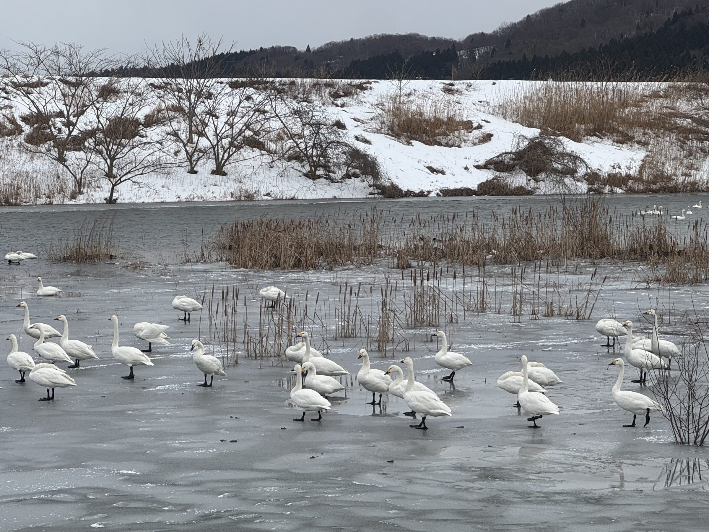 昨年の春、そんな白鳥たちの中に、怪我をしてロシアへ北帰することができなかった一羽がいた。地域の人たちは心配そうに見守り、ときどき餌をあげながら、厳しい夏の暑さを一緒に乗り越えた。そして今シーズン、再び白鳥の群れが飛来したとき、その一羽は無事に群れへ合流することができた。その姿を見て、ほっと胸をなで下ろした人も多かったはずだ。白鳥はただの渡り鳥ではなく、この町の暮らしと心に、確かに寄り添っている。